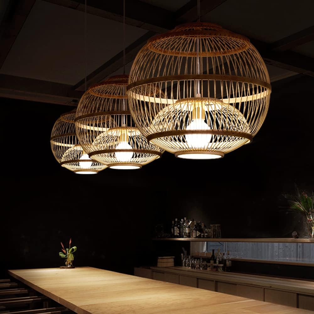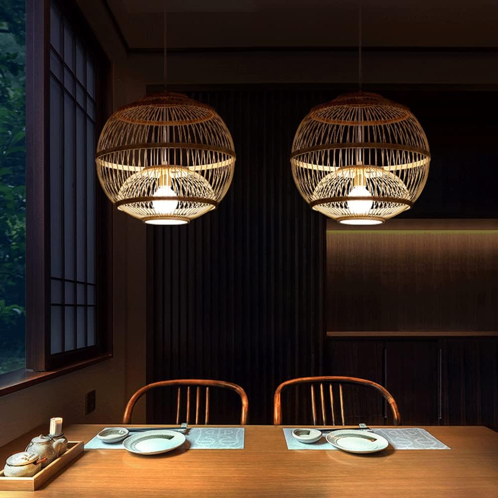 This product is a hand-woven natural bamboo pendant lamp, similar to models listed as the CSSYKV Japanese Bamboo Lamp or the Bayou Breeze Loggins Lantern Pendant.